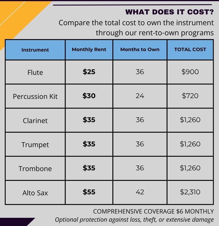 OTHER INSTRUMENTS MAY BE AVAILABLE. PRICES DISPLAYED WITHIN THE DROP-DOWN MENU AFTER SELECTING YOUR SCHOOL.