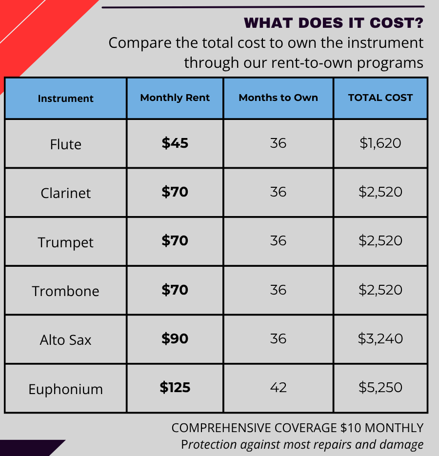 OTHER INSTRUMENTS MAY BE AVAILABLE. PRICES DISPLAYED WITHIN THE DROP-DOWN MENU AFTER SELECTING YOUR SCHOOL.